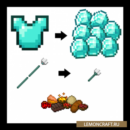 Мод на интересные рецепты StuffZ добавит в игру новые рецепты с помощью которых вы сможете создать трезубец, кольчужную броню, а так же разобрать разобрать броню и некоторые инструменты на составляющие.